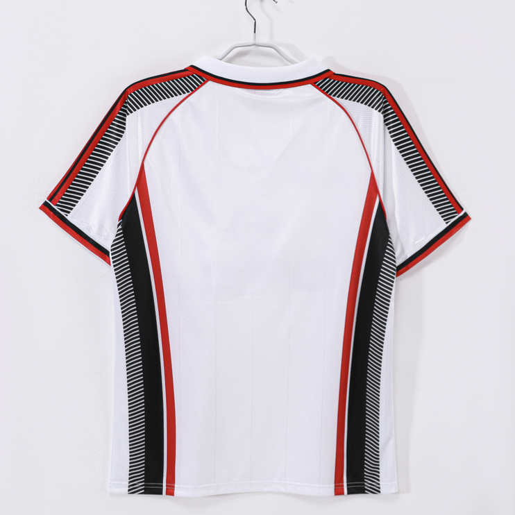 Återupplev AC Milans ikoniska 1997/98-säsong med denna stilrena retro bortatröja i klassiskt vitt. Tröjan representerar lagets stolta tradition och eleganta spelstil under denna framgångsrika period, och är perfekt för supportrar och samlare som vill ha en autentisk retrolook.