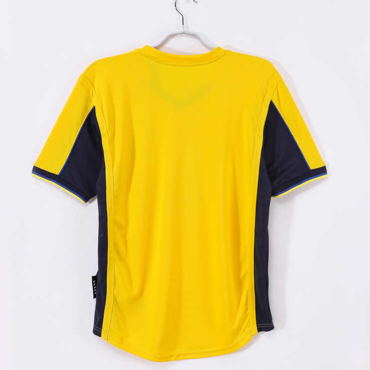 Återupplev Arsenal 2000/01-säsongen med denna ikoniska retro bortatröja i klassiskt gult. Tröjan speglar lagets historiska stil och passionerade spel under den tiden, och är perfekt för både supportrar och samlare som vill bära en autentisk retrolook.