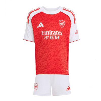 Detta kortärmade fotbollsställ för barn består av en hemmatröja och matchande shorts, tillverkade i ett lätt, andningsbart och snabbtorkande material som ger hög komfort under träning, match och vardagslek. Designen för säsongen 2025/26 följer Arsenals officiella hemmaställ och kombinerar tradition med modern passform.