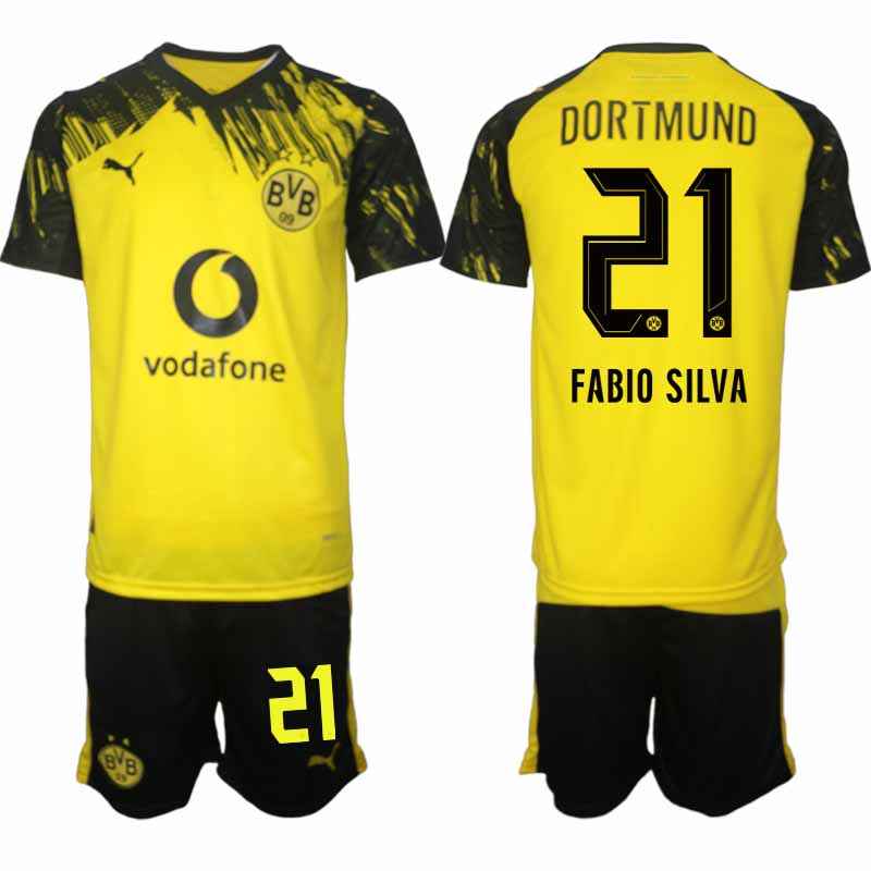 Stöd Borussia Dortmund med detta officiella herrhemmaställ 2025/26 – med Fábio Silva #21. Setet innehåller tröja och shorts i klubbens klassiska gul-svarta färger, samma stil som spelarna bär på Signal Iduna Park under säsongen 2025/26.