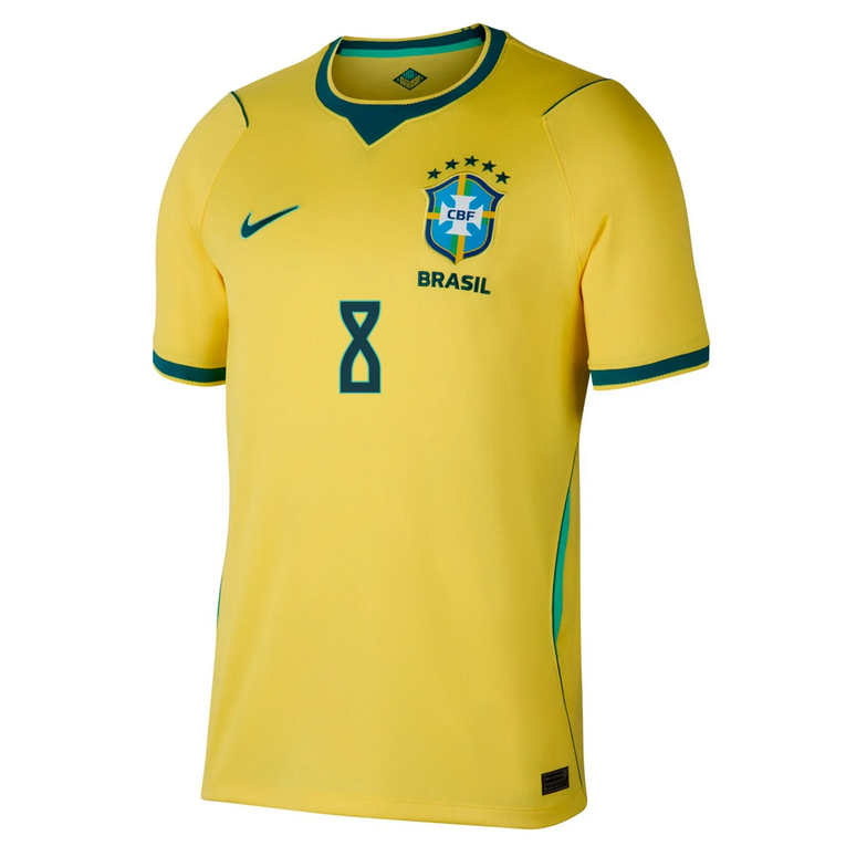 Brasilien VM 2026 Hemmatröja bär namnet och numret för Bruno Guimarães, en teknisk och spelskicklig mittfältare känd för sin passningsprecision, speluppfattning och förmåga att styra tempot i matchen. Ett utmärkt val för fans som uppskattar intelligent och kreativt mittfältsspel.