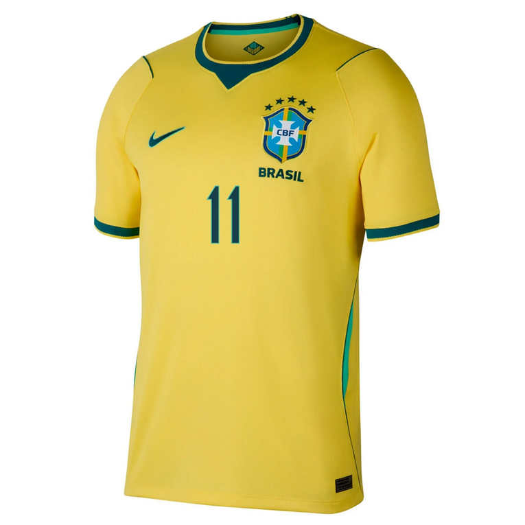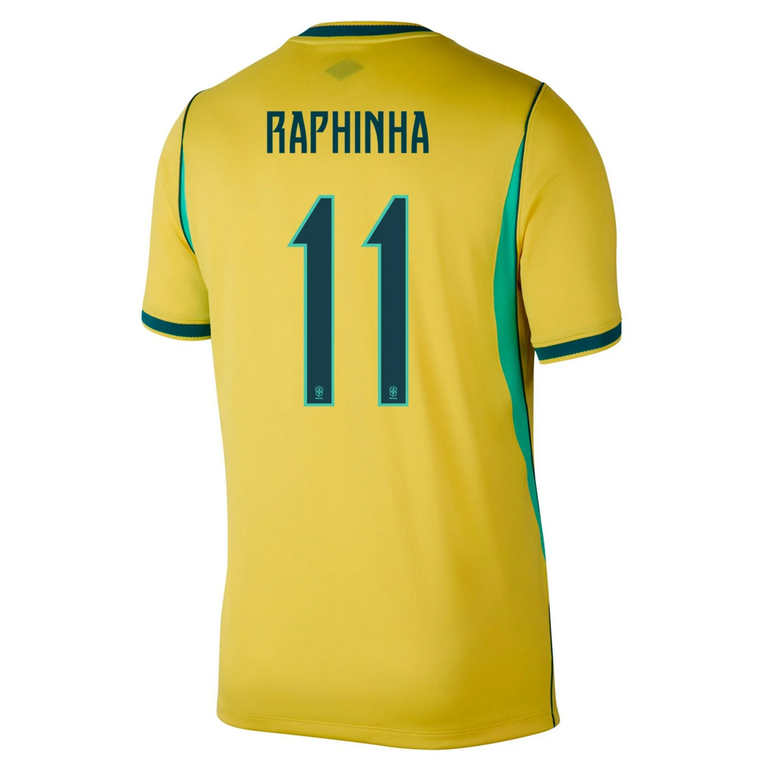 Brasilien VM 2026 Hemmatröja bär namnet och numret för Raphinha, en snabb och teknisk ytterforward känd för sin dribblingsförmåga, kreativitet och offensiva hot från kanten. Ett perfekt val för fans som uppskattar fart, teknik och kreativ anfallsfotboll.