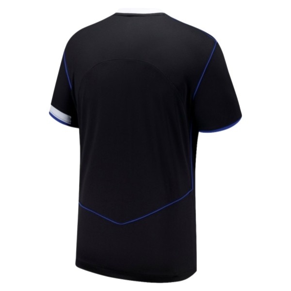 Upplev Chelsea FC 2025/26 tredjetröja för herrar, en modern hyllning till klubbens ikoniska stil från mitten av 2000-talet. Tröjan är huvudsakligen svart med silverfärgade (Field Silver) logotyper och blåa (Game Royal) detaljer, officiellt i färgerna Black / Game Royal / Field Silver.
