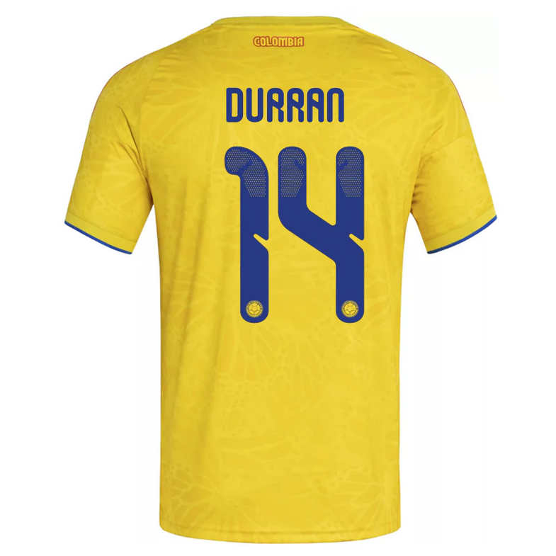 Colombia Hemmatröja VM 2026 Herr – Jhon Durán #14 Kortärmad Fotbollströja (Gul)