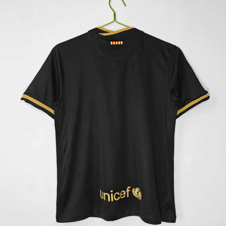 Köp din FC Barcelona 2020/21 Retro Bortatröja idag och hylla klubbens ikoniska säsong med en klassisk svart fotbollströja.