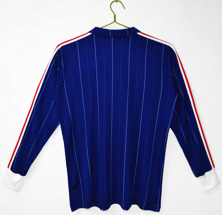 Tröjan bar stjärnor som Michel Platini, Marius Trésor och Jean Tigana, och representerar en era av tekniskt skickligt och taktiskt spel på internationell nivå. Den klassiska blå färgen med vita och röda detaljer gör tröjan både autentisk och stilren.