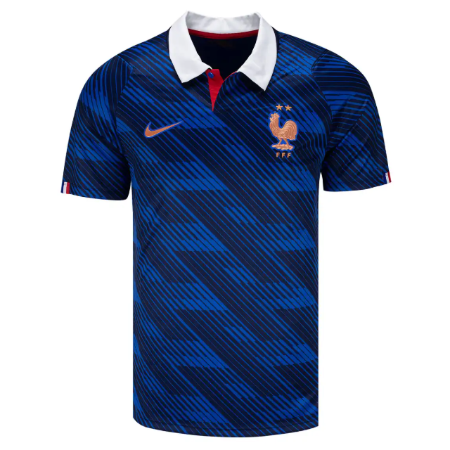 Tillverkad i lätt, snabbtorkande och ventilerande material som effektivt transporterar bort svett, håller denna Frankrike hemmatröja herr VM 2026 dig sval och bekväm under hela matchen. Den sportiga passformen säkerställer full rörelsefrihet och en autentisk känsla på planen.