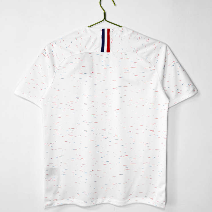 Denna Frankrike bortatröja VM 2018 i retrodesign återger de klassiska vita färgerna med stilrena designelement från originalmodellen. Perfekt för passionerade supportrar, samlare och alla som älskar fotbollshistoria och retrostil.