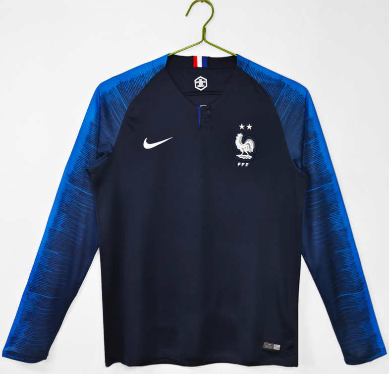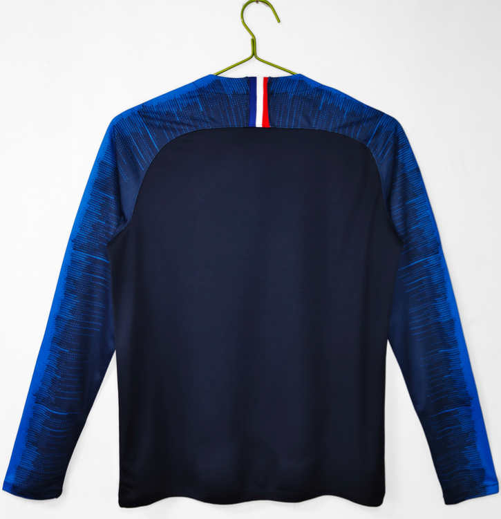 Denna Frankrike VM 2018 retro hemmatröja långärmad kombinerar historia, nostalgi och stil i ett tidlöst fotbollsplagg. Beställ din tröja idag och hylla världsmästarlaget från 2018.