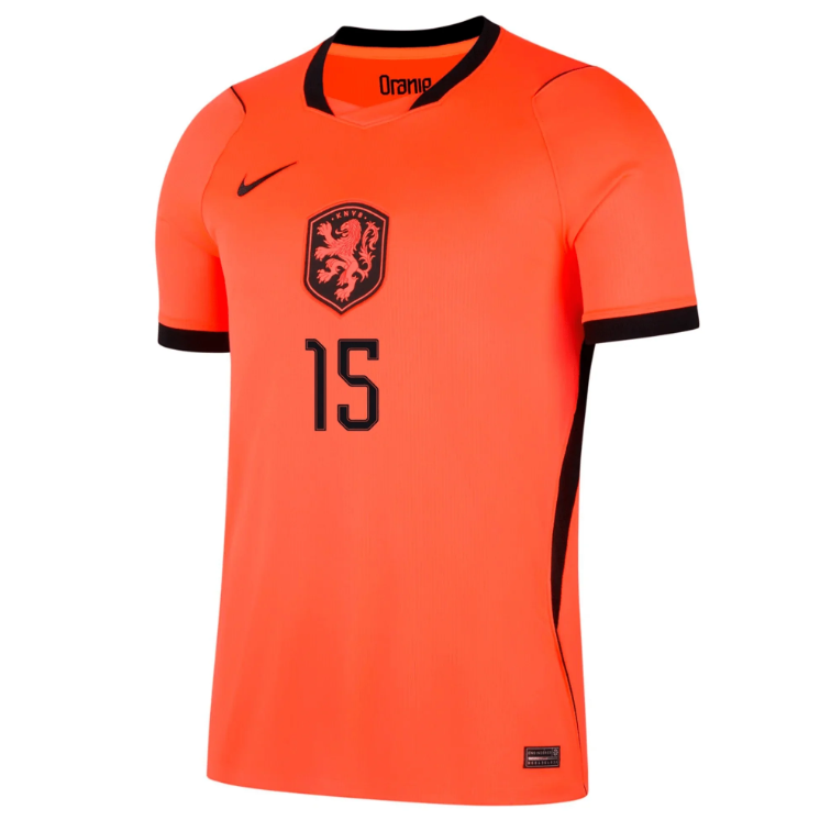 Bär denna Nederländerna hemmatröja VM 2026 herr och visa ditt stöd för Netherlands national football team. Denna kortärmade fotbollströja har tryck med försvararen Micky van de Ven och hans nummer 15 – ett perfekt val för fans som uppskattar snabbhet, styrka och stabilt försvarsspel.