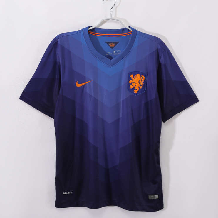 Upplev VM 2014 med denna retro bortatröja från Nederländernas herrlandslag i fotboll. Designen speglar Nederländernas stolta fotbollstradition och deras spektakulära spel under världsmästerskapet i Brasilien.