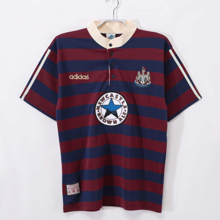 Återupplev mitten av 90-talet med denna ikoniska retro bortatröja från Newcastle United FC säsongen 1995/97. Den klassiska röda och blå designen speglar klubbens stolta tradition och passion på St. James’ Park under denna minnesvärda period i engelska Premier League.