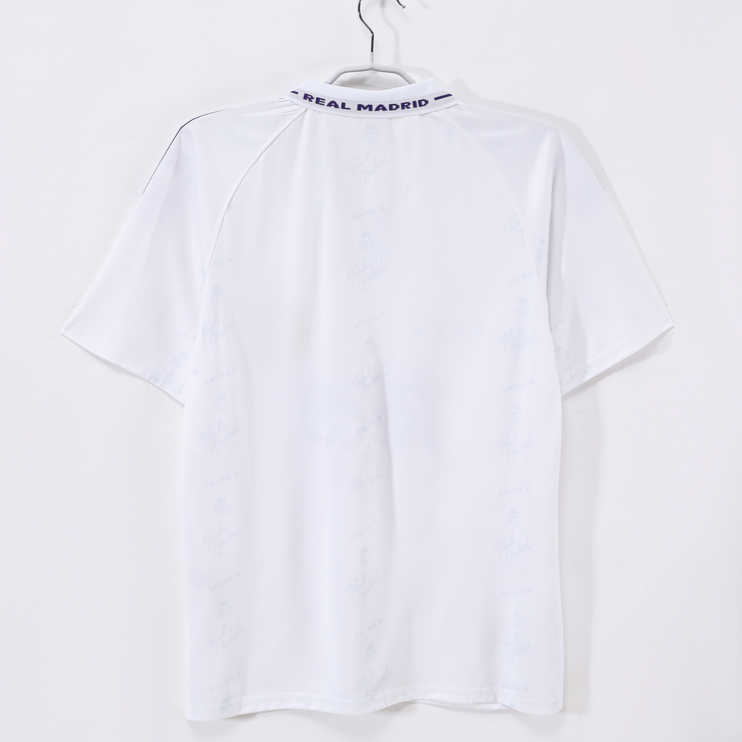 Återupplev Real Madrids legendariska säsonger 1994–1996 med denna retro hemmatröja i klassiskt vitt. Tröjan representerar klubbens stolta tradition och eleganta spelstil under mitten av 1990-talet, perfekt för supportrar och samlare som vill bära en autentisk retrolook.