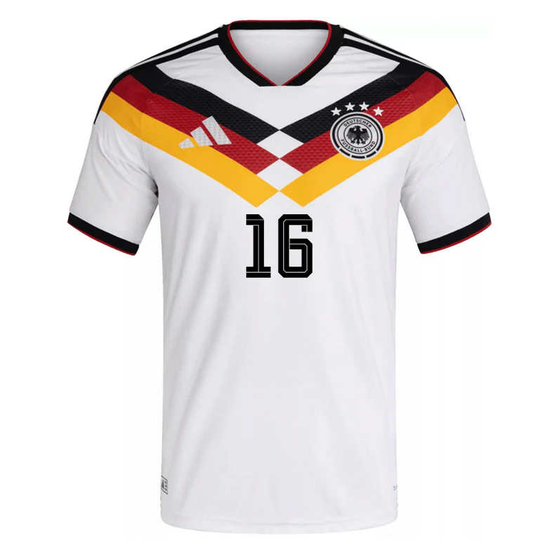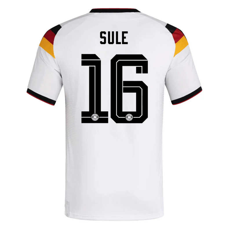 Niklas Süle #16 är en fysisk och pålitlig mittback, känd för sin styrka, luftdueller och defensiva stabilitet. Med hans namn och nummer på ryggen blir denna tröja ett tydligt uttryck för passion och lojalitet till Tyskland.
