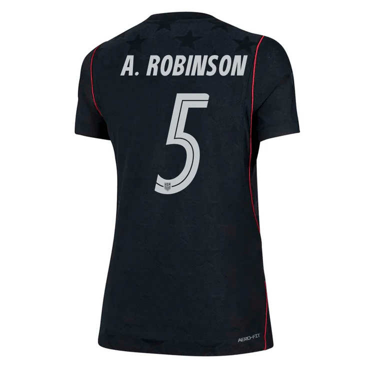 Heja på din favorit, den snabba och offensivt drivna vänsterbacken, i USA:s bortatröja inför VM 2026 med Antonee Robinson #5. Visa din uppskattning för Robinson, som är en viktig spelare i USA:s landslag tack vare sin explosiva snabbhet, starka löpkapacitet och offensiva hot längs vänsterkanten. Han bidrar både i försvar och anfall och är känd för sina precisa inlägg och sin uthållighet under hela matchen. På klubbnivå spelar han i Fulham FC, där han har utvecklats till en stabil och pålitlig ytterback på hög Premier League-nivå. Inför VM 2026 är han en nyckelspelare i USA:s defensiva och offensiva balans.